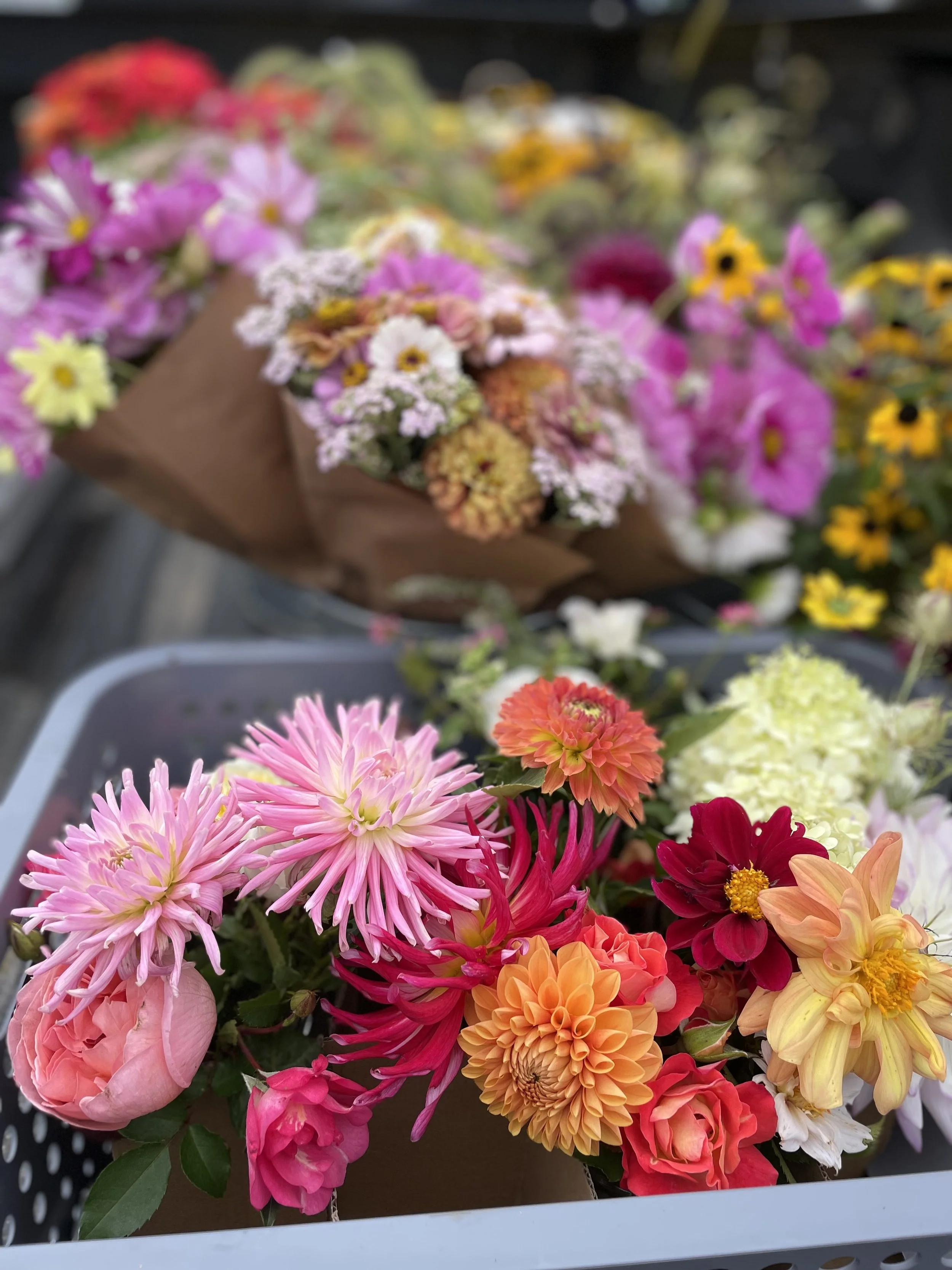 Farmers markets are such a fun place of direct connection with consumers of our products. And, they are a bit of work to prepare for! Join us as we get ready for our next farmers market, and see for yourself what is involved. We will put together market bouquets of fresh flowers, restock the freezer, package eggs, update signs, and load the trailer for early morning departure.